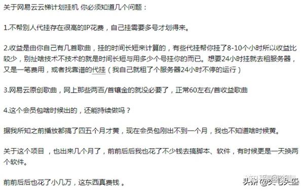 综上所述,这个网易云自动挂机项目的投资其实是相当大的,而且存在着严重的F风险,也就是说运营商可能不仅赚不到一毛钱,还有赔钱的风险。